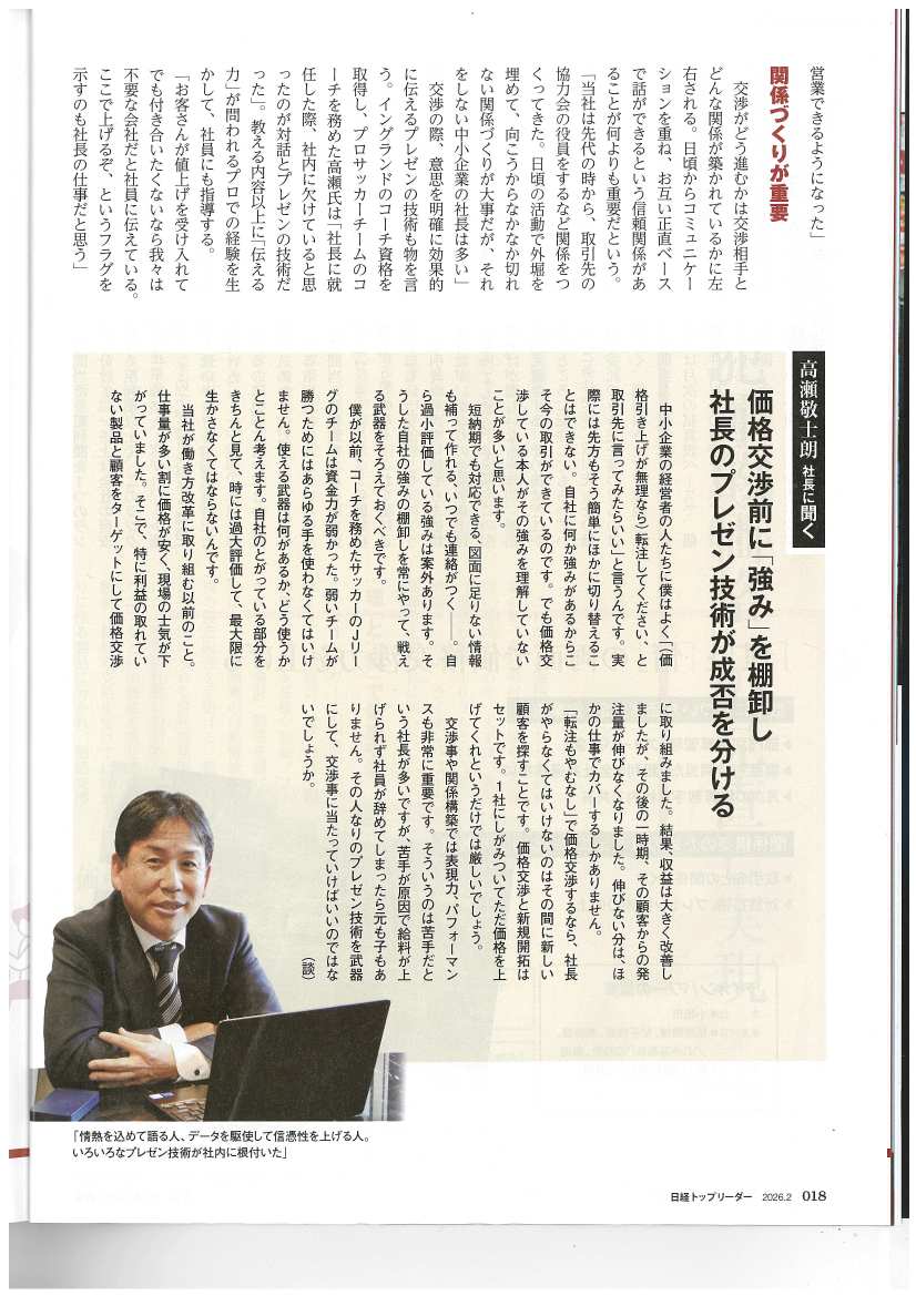 日経トップリーダー2月号に弊社社長が掲載されました。