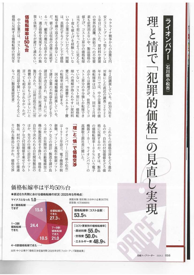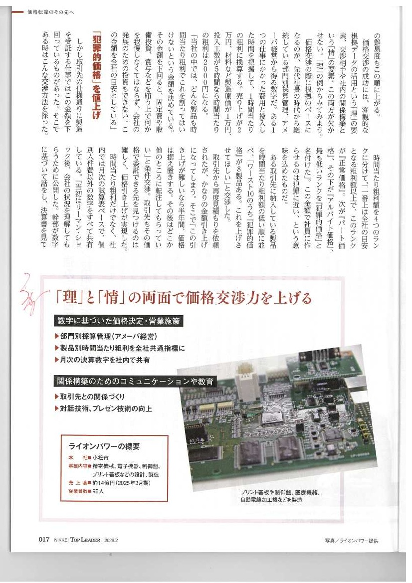 日経トップリーダー2月号に弊社社長が掲載されました。